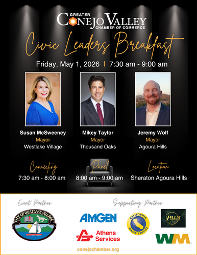Join the Greater Conejo Valley Chamber of Commerce for the next event in the Spotlight Breakfast Series: Civic Leaders Mayoral Roundtable.