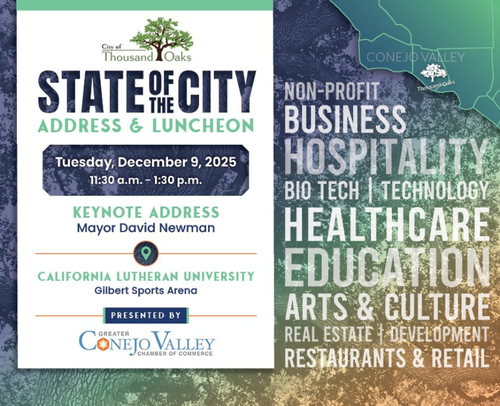 The City of Thousand Oaks and the Greater Conejo Valley Chamber of Commerce present the 2025 Thousand Oaks State of the City Address and Luncheon,
